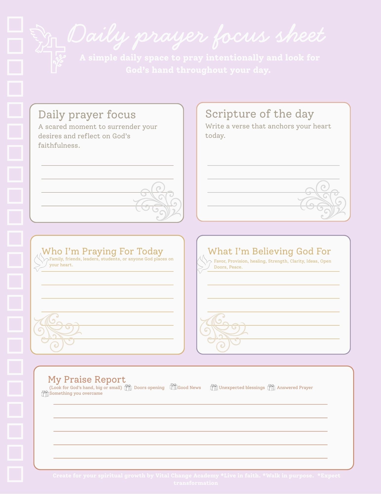 Daily Prayer Focus Sheet | Printable Devotional Page